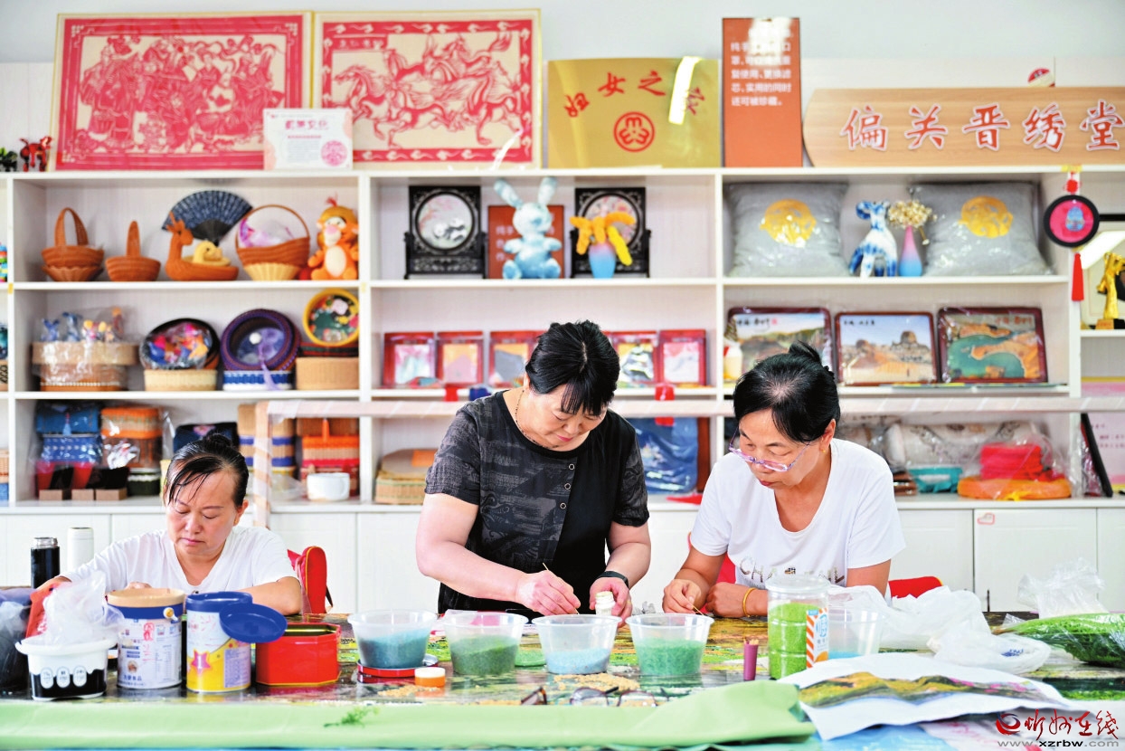“非遺不是老古董,是活路?!焙鹿~帶領(lǐng)繡娘們?cè)趥鹘y(tǒng)晉繡基礎(chǔ)上大膽創(chuàng)新:實(shí)用品系列中,可水洗的刺繡口罩成了圈中“網(wǎng)紅”;民俗文創(chuàng)系列中,高端雙面純手工刺繡的小葫蘆仙是亮眼招牌,車掛、毛衣鏈等物件融合晉北民俗,一推出便被搶購(gòu)一空;雜糧點(diǎn)繡畫更顯巧思,用偏關(guān)特產(chǎn)五色糜子、黑豆等,粘制出壯麗景觀,“雜糧之都”的物產(chǎn)搖身變成了精致的藝術(shù)品……刺繡從閨閣技藝變成帶動(dòng)一方的富民產(chǎn)業(yè),產(chǎn)品遠(yuǎn)銷省內(nèi)外。